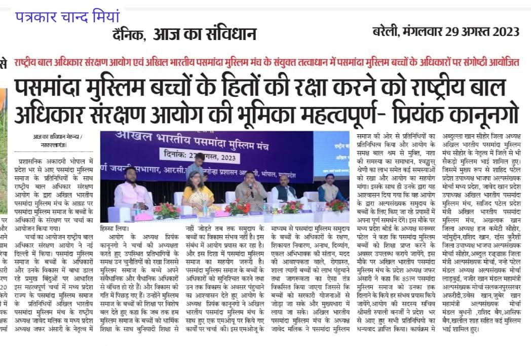 8. आत्म-पहचान का संवर्धन — पसमांदा समुदाय में उनकी भारतीय पहचान, इतिहास और परंपराओं के प्रति गर्व पैदा करना।